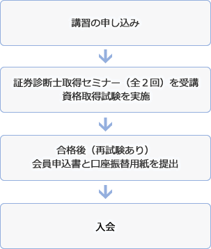 日本LCQS生命保険診断士協会の入会にあたっては、証券診断士取得セミナー(全2回)を受講後、お渡しする入会申込書と口座振替用紙にご記入の上、受講されたセミナー会場にて当協会スタッフにご提出ください。